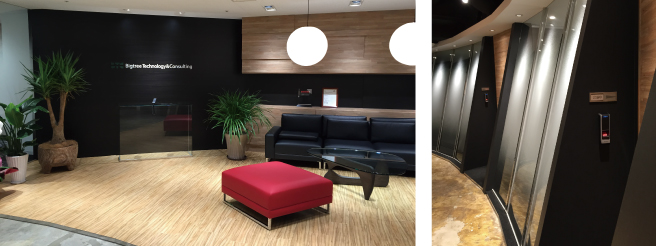 新オフィスでは、レイアウト段階からセキュリティ設備の設計を行い、共有部からアクセスできる全ての扉と、執務室内のハイセキュリティエリアへの入室をアクセス権限によって管理できる仕様とし、セキュリティレベルを設定しています。 また、新オフィスでは、新たに指紋認証リーダーも採用しました。同社では、今夏札幌オフィスの移転も実施され、バイオスターシステムによる入退管理設備を導入しています。IPベースシステムの特長を活かし、札幌オフィスでは、ID認証リーダーと電気錠のみを設置し、アクセスログ、ユーザー管理は全て東京本社で一括管理する構成とすることで、本社と同等のセキュリティを実現しています。