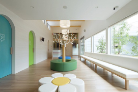 リニューアルされた医院は、外観、インテリアともにユニークで洗練されたデザインで統一され、待合室にはプレイルームが広く取られています。病院に行くのを嫌がるお子様が「病院に行きたい!」と思って頂けるような、「楽しい場所」であることを目指され、とても明るい雰囲気のクリニックです。
